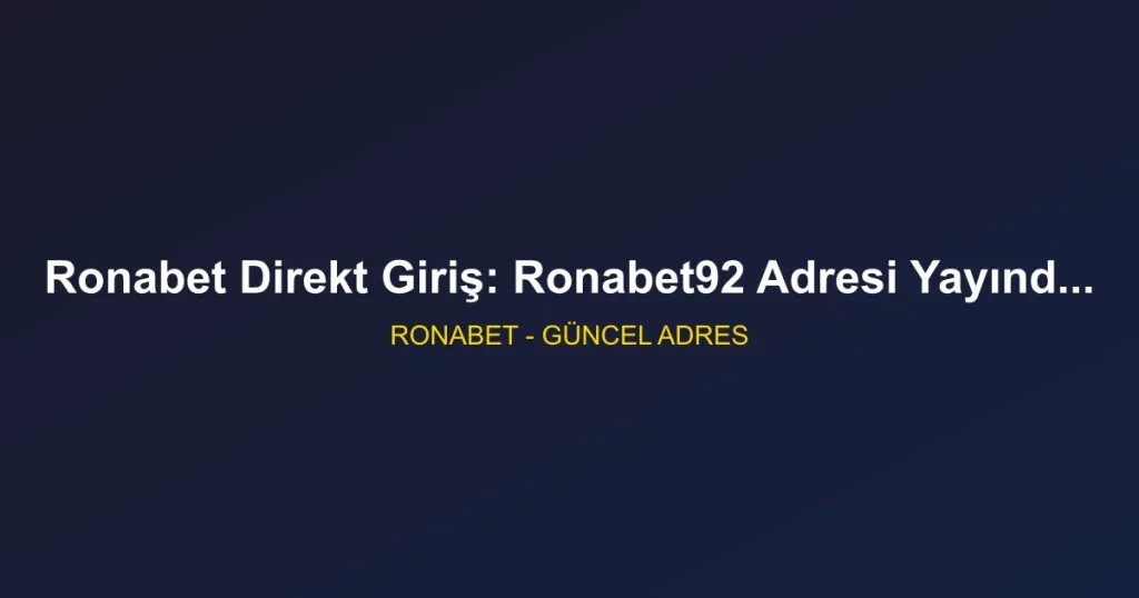 Daha fazlasını oku… from Ronabet Direkt Giriş: Ronabet92 Adresi Yayında